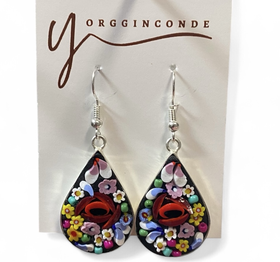 Aretes en bello filati italiano. Diseño único. La base revestida en plata de alta calidad.