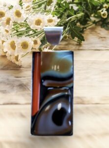 Base revestida en plata de alta calidad. Realizado con adornos en vitrofusión que es el proceso por el cual el cristal se somete a altas temperaturas para producir una pieza única e irrepetible.