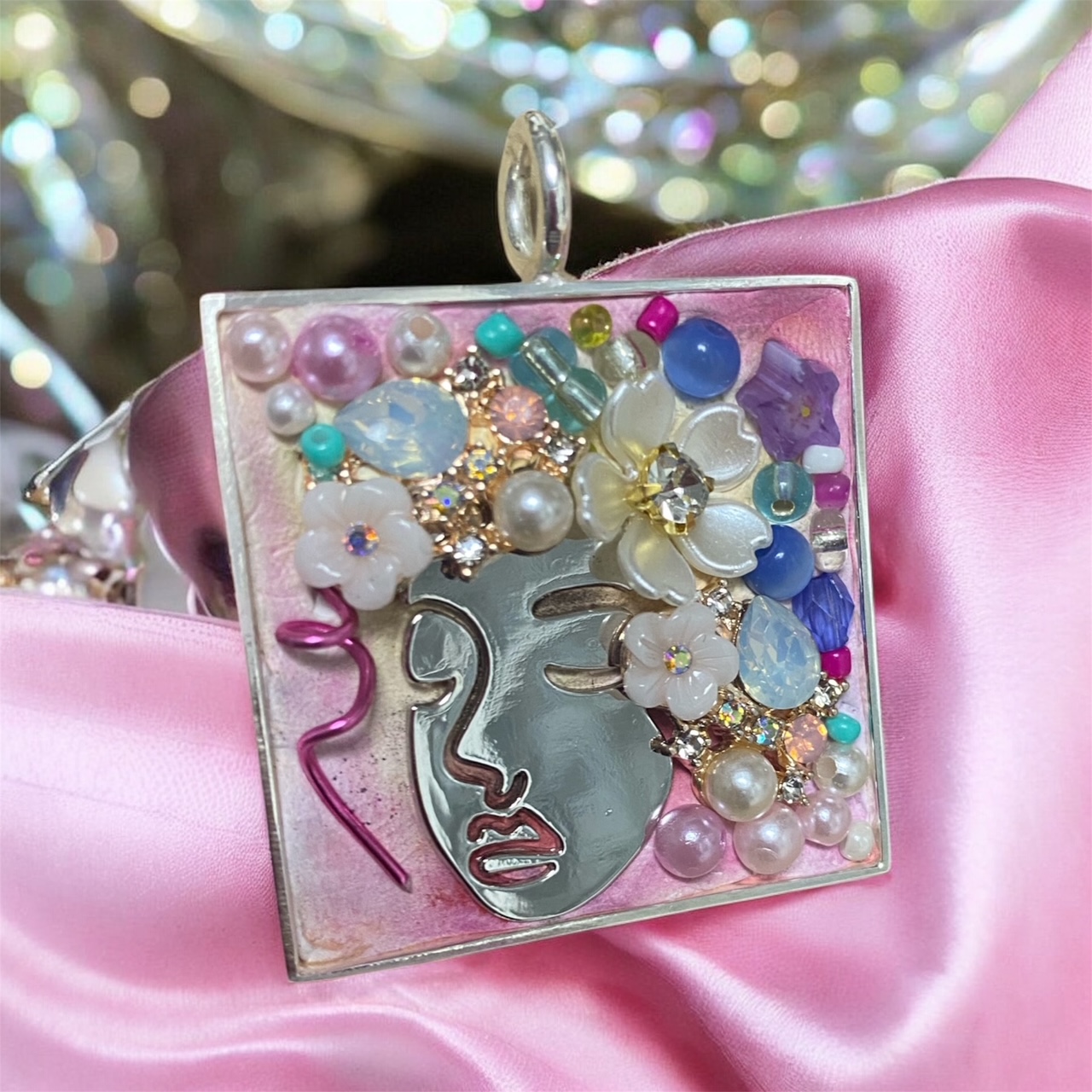 Precioso  en tonos pasteles sobre una base revestida en plata de alta calidad. Mide aproximadamente, 1.5″.