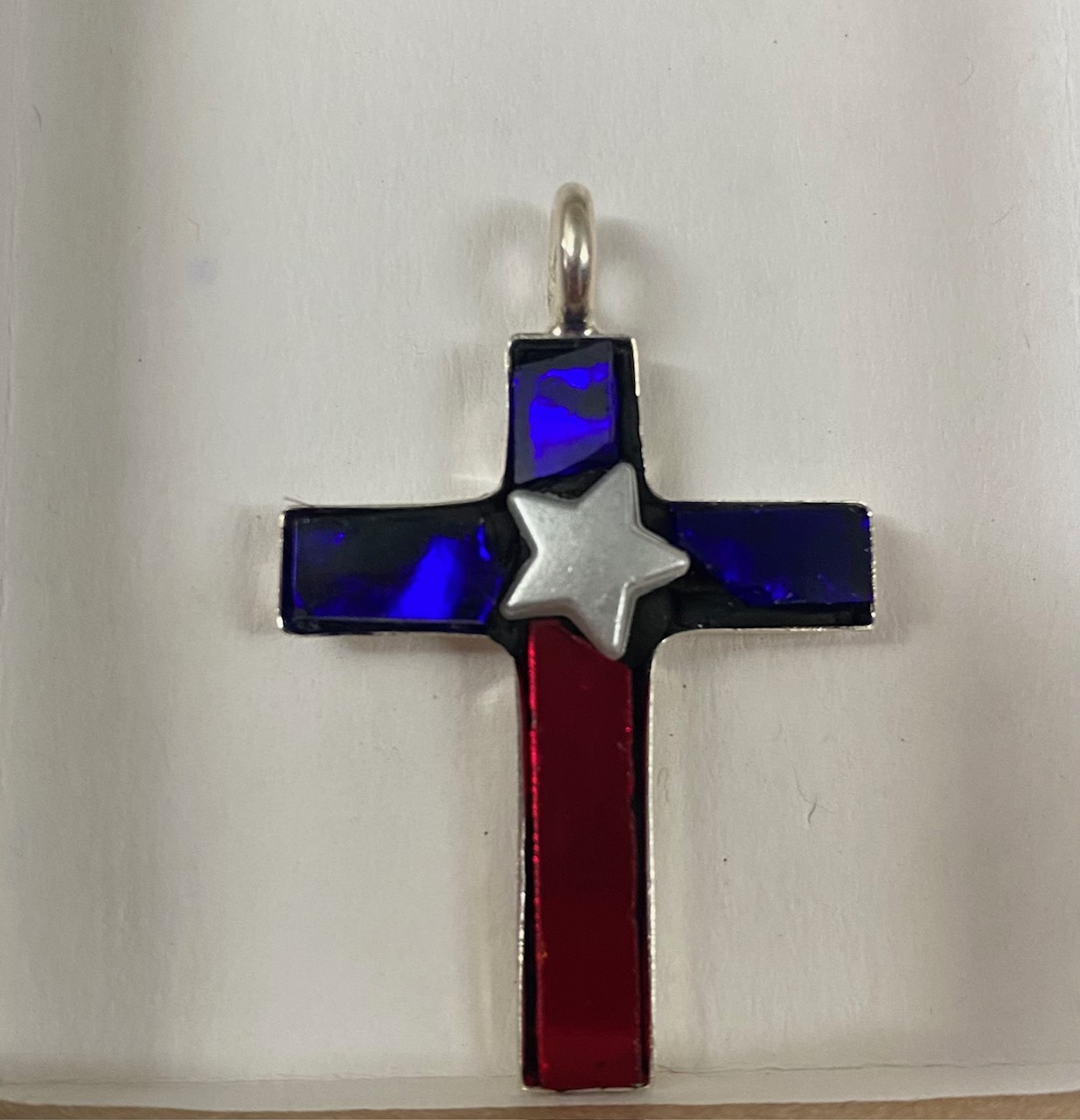 Bella! Inspirada en los colores de la bandera. Totalmente en vidrio sobre base revestida en plata de alta calidad. Mide aproximadamente 1.25″ x 1.50″.