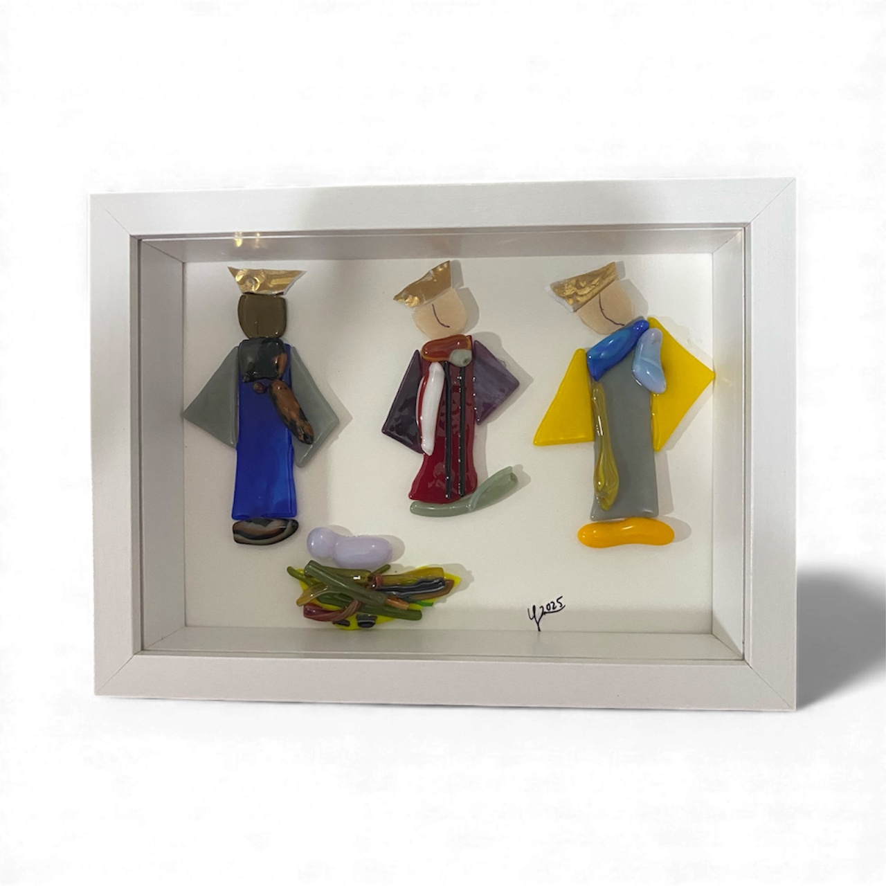 Linda estampa trabajada en vidrio fundido. Mide aproximadamente, Ā 6″ x 8″ con su marco.