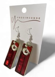Bellos aretes en vidrio rojo con la imagen de Santa Claus. Las bases revestidas en plata de alta calidad.