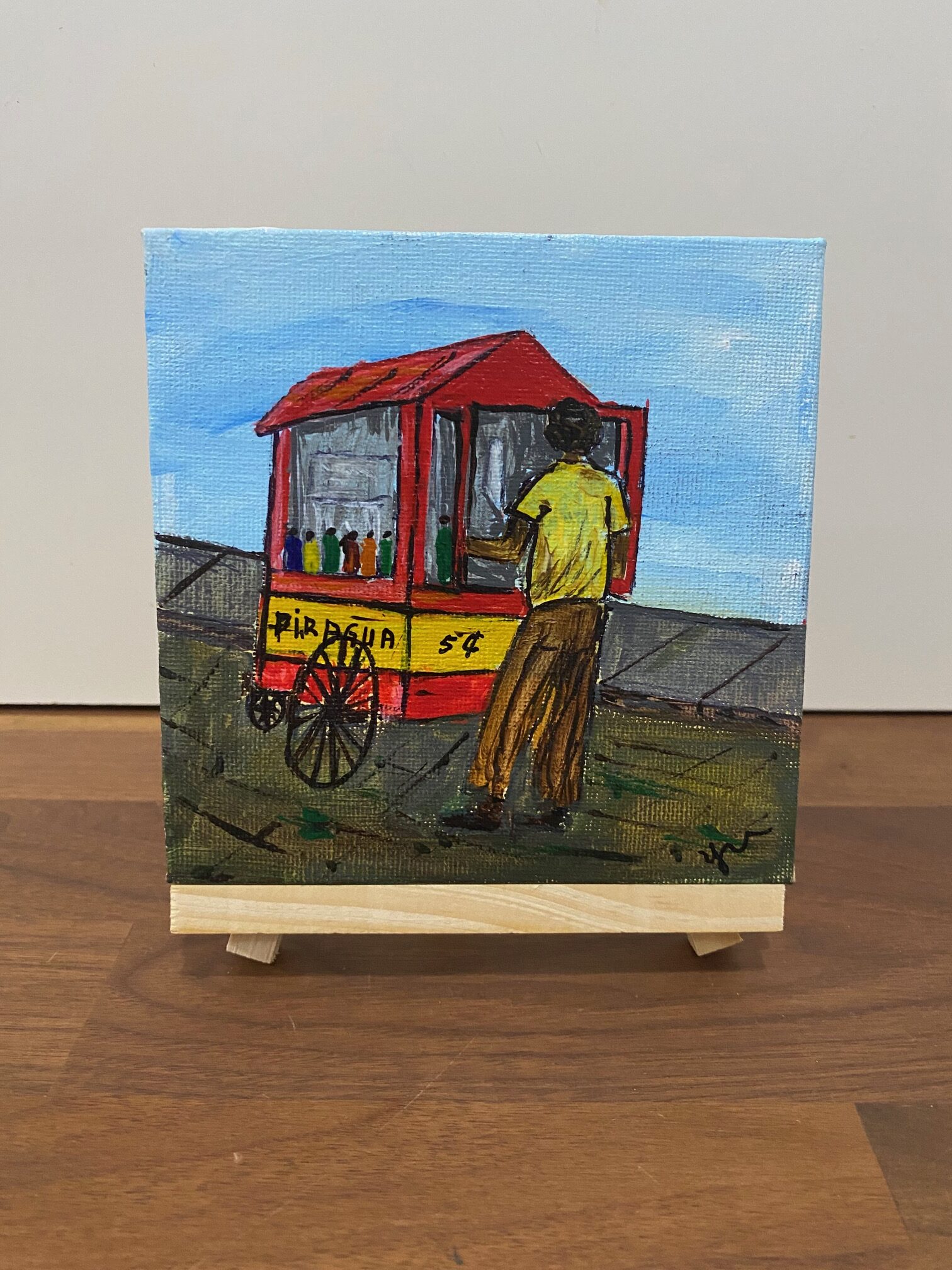 Qué ricas las piraguas especialmente cuando hace mucho calor!! Pintada sobre canva, mide 5″ x 5″ e incluye el caballete para exhibirla.
