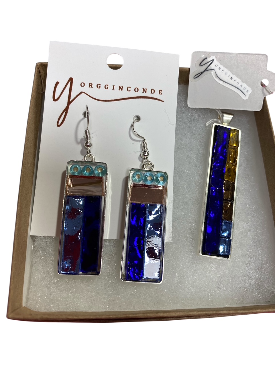 Hermoso conjunto realizado con cristal dicrótico sobre bases hechas a mano y revestidas en plata de alta calidad.