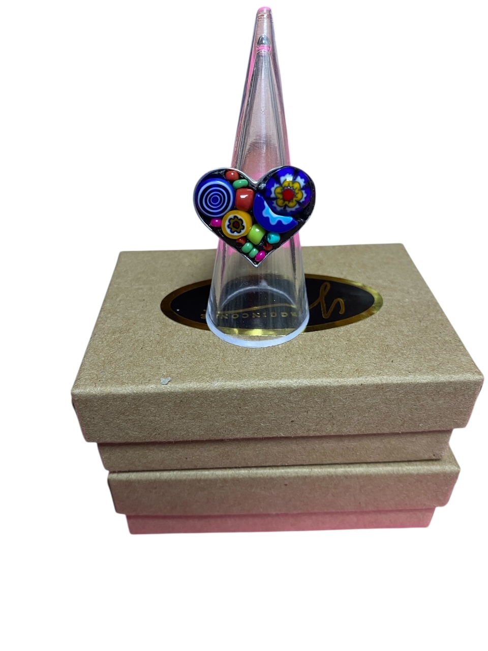 Sortija ajustable corazón con murrine