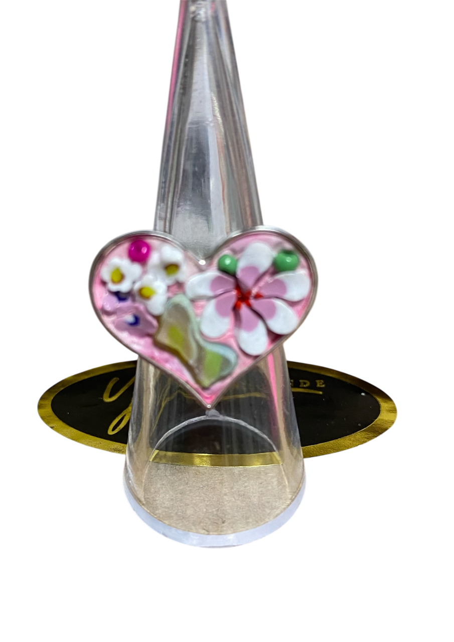 Sortija ajustable corazón en filati blanco y rosado